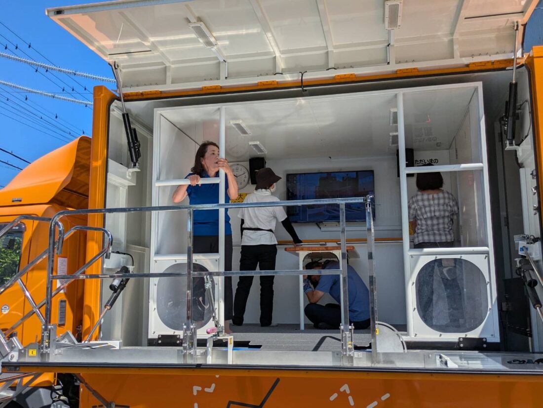県西部地域局が所有する地震体験車両「そなえる君」は、震度7が体験できます。