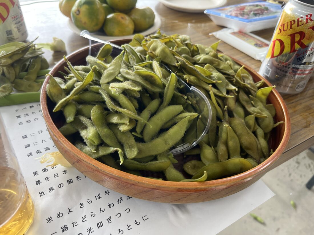 3ヶ月の時を経て成長した枝豆を収穫し食す会に参加、見事に身が付いて、立派な枝豆に🫛