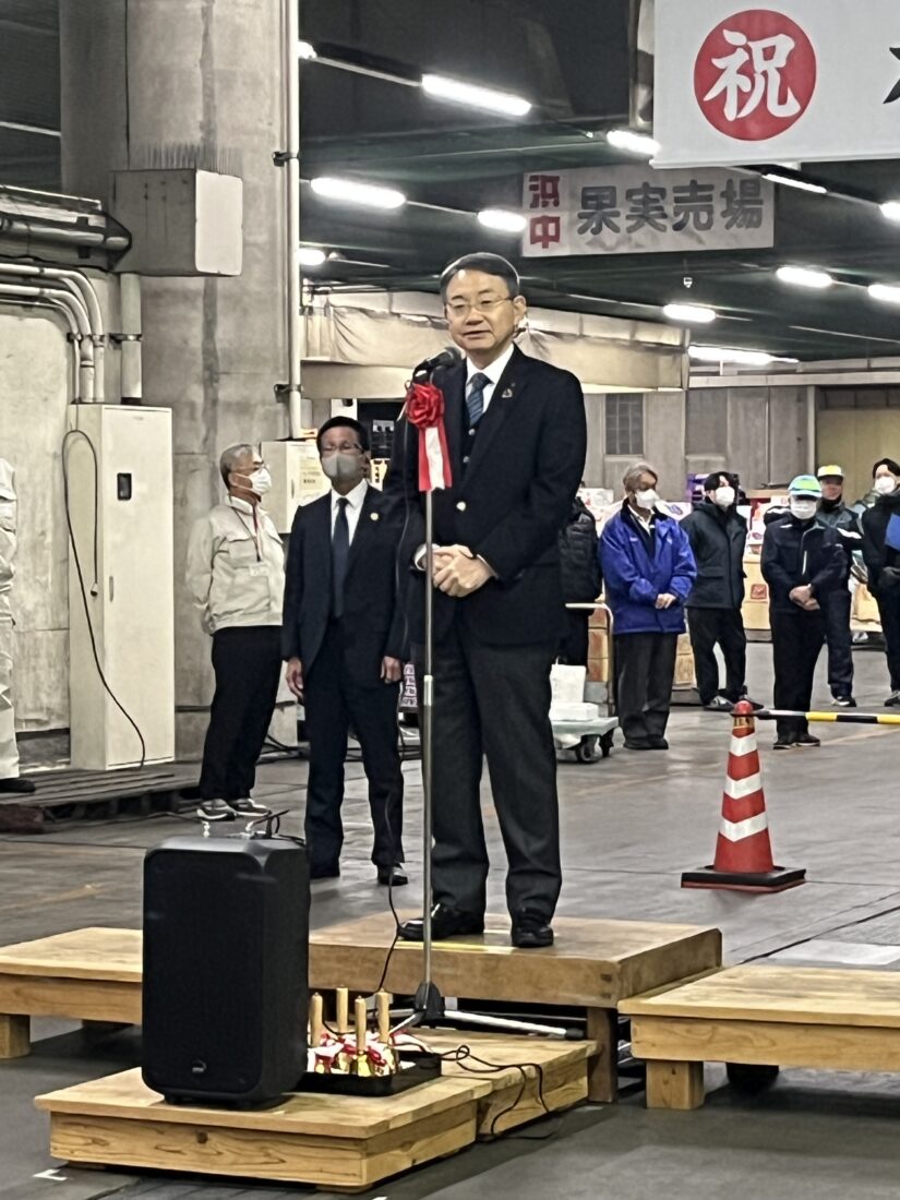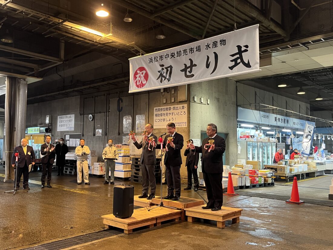 恒例の浜松市中央卸売市場の初せり式に参加しました。遠州地域の胃袋を満たす浜松市場が、動き出しました。