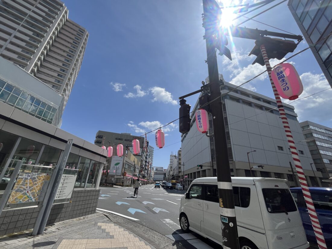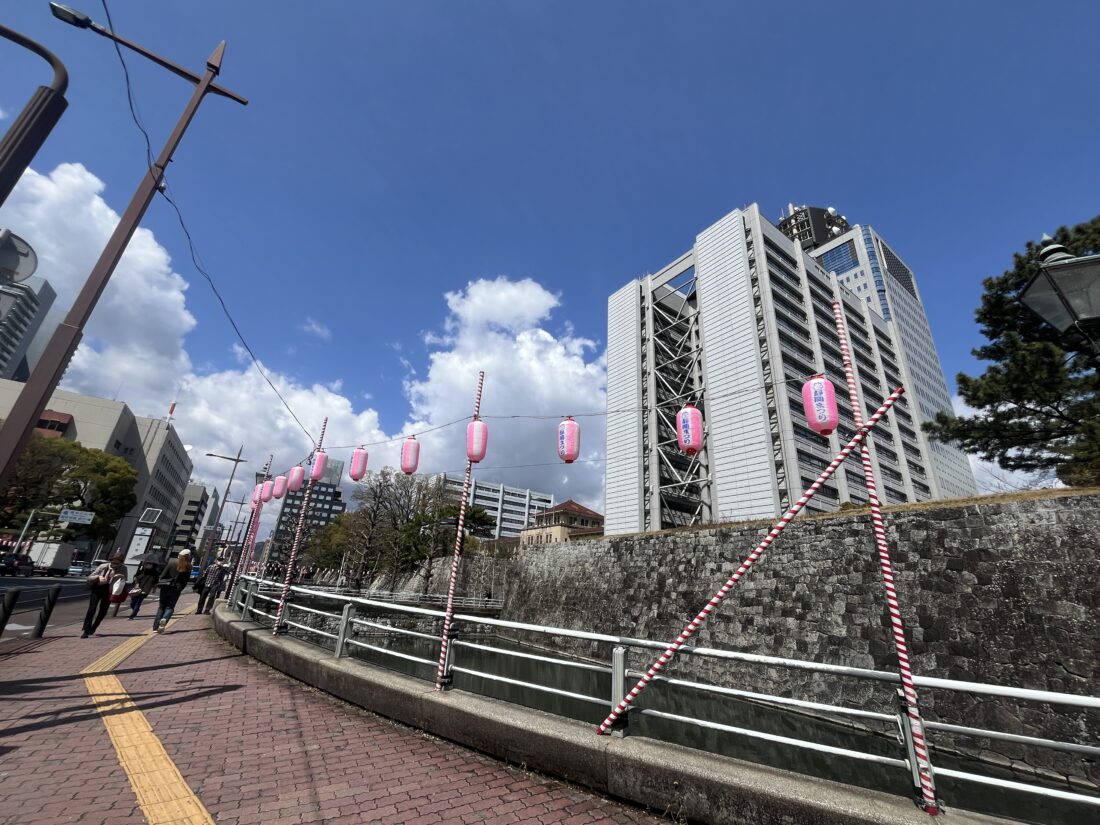 静岡駅前から県庁へと続く御幸通り沿いには、桜色と白いの提灯が飾られ、夜には火が灯り雰囲気を醸し出しています。