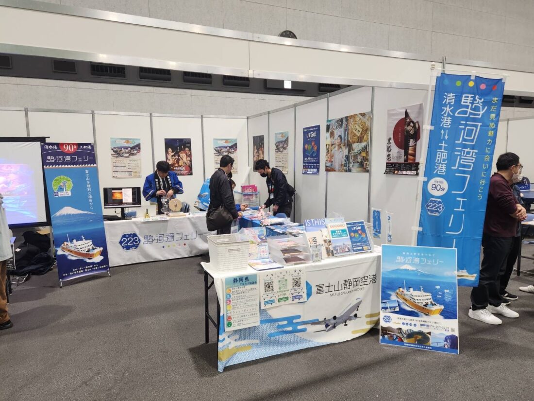県ブースには、駿河湾フェリーの利用促進、eスポーツの体験スペースなどを展示、メインスポンサーのシャンソンブースでは美容関連グッズが並び、興味はそちらにあれど、時間切れ。