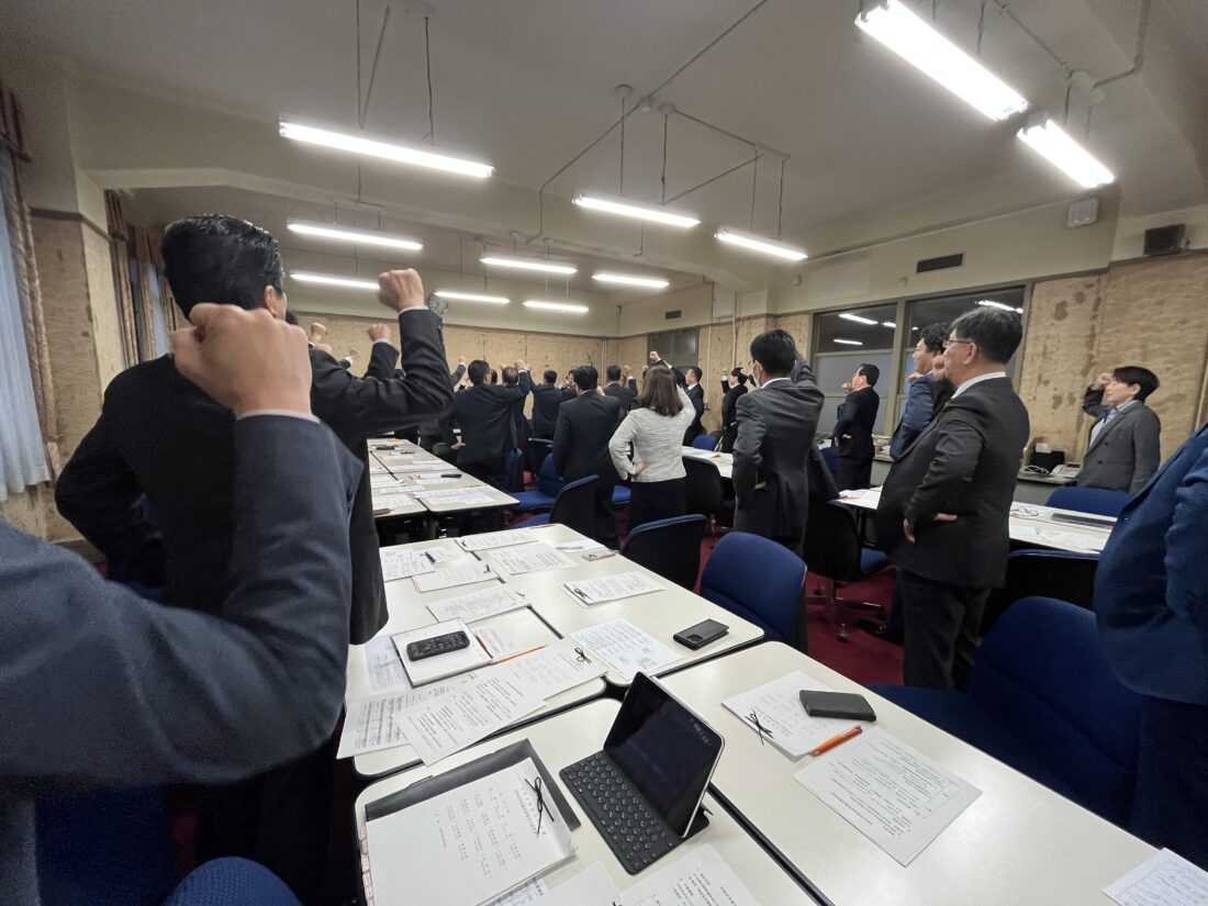 会の冒頭に、遊説部長・岩田県議(函南町)による『ガンバロー』三唱❗️