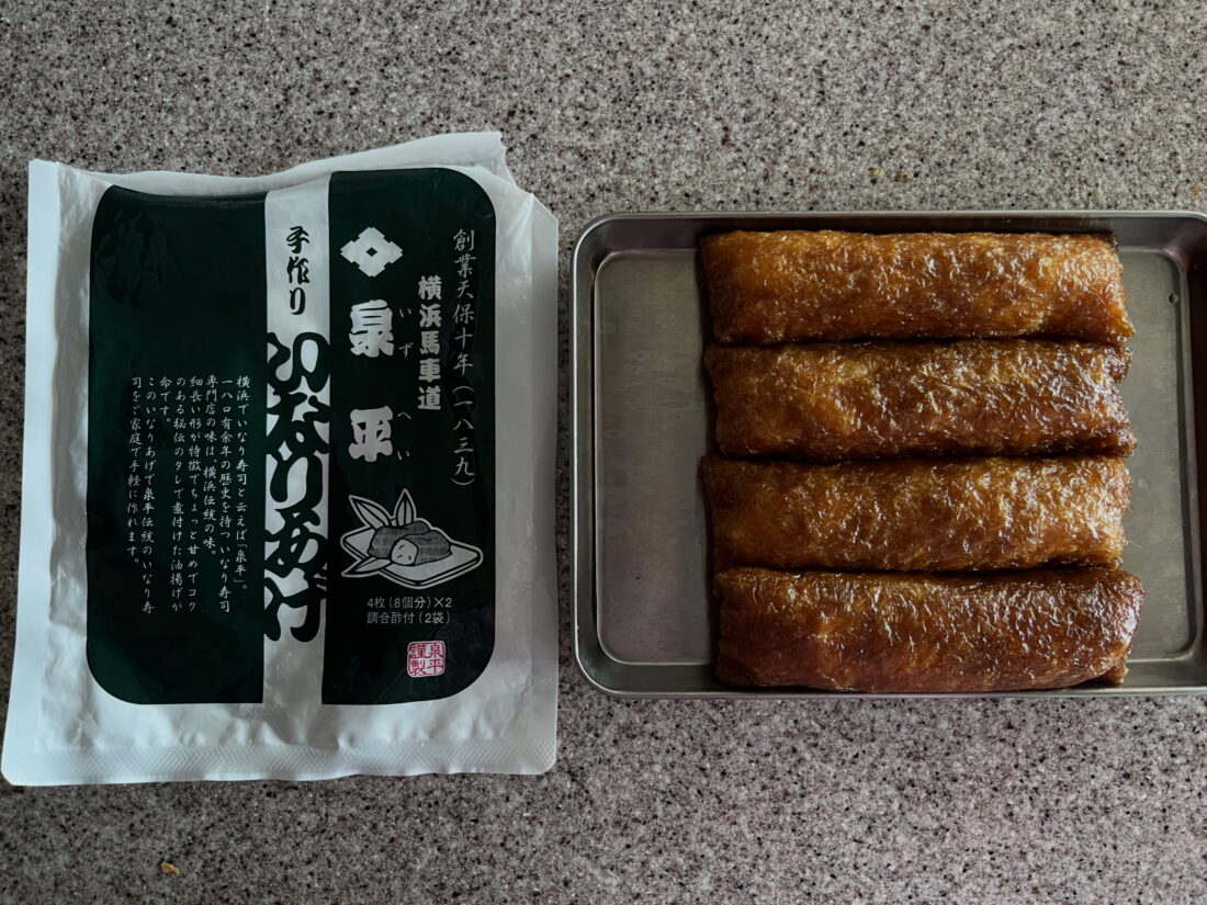 その泉平のおいなりさんを自宅で再現できる、すし酢付きのレトルトを見つけ、懐かしくて購入。